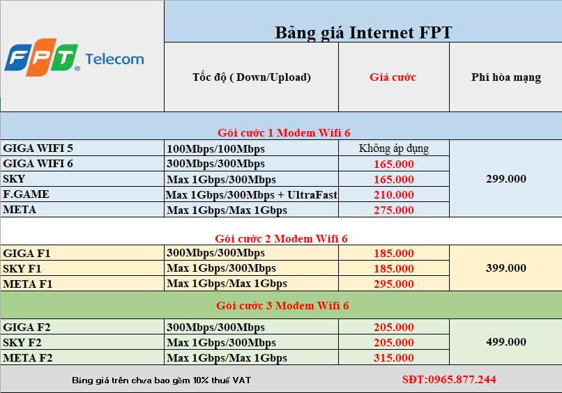 2. BẢNG GIÁ GÓI CƯỚC INTERNET FPT TẠI AN GIANG